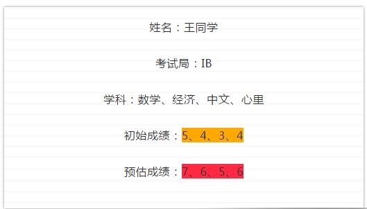 10月考試:在最近的10月內部考試中,王同學的數學拿到了理想中的7、經濟、心理學6+中文6-,尤其是中文,是讓同學特別開心也很意外,畢竟論述性帶有主觀性的學科不像數學、物理量化、標化的多,同學很是感慨的說:付出就有回報!