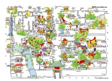 4.行動:學生們現在網上了解南鑼鼓巷附近的地圖和分布,打印一版網絡地圖,便于標記美食地點,之后實地走訪南鑼鼓巷,走訪后,進行電子版/手工版繪制和校對,最后完成成品捐獻給當地旅游辦公室、現場發放、或放在旅游咨詢臺供游客免費領取