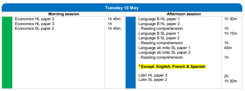 Please note that for Studies in language and literature and Language acquisition, English, French and Spanish are scheduled individually from all other languages.