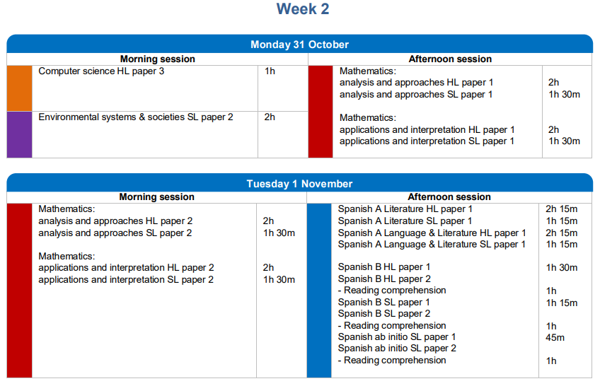 Please note that for Studies in language and literature and Language acquisition, English and Spanish are scheduled individually from all other languages.
