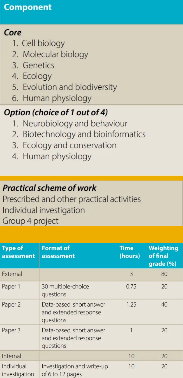 理論內容按照級別可以劃分為SL(核心內容)、HL(拔高內容)和Options(選修內容)。